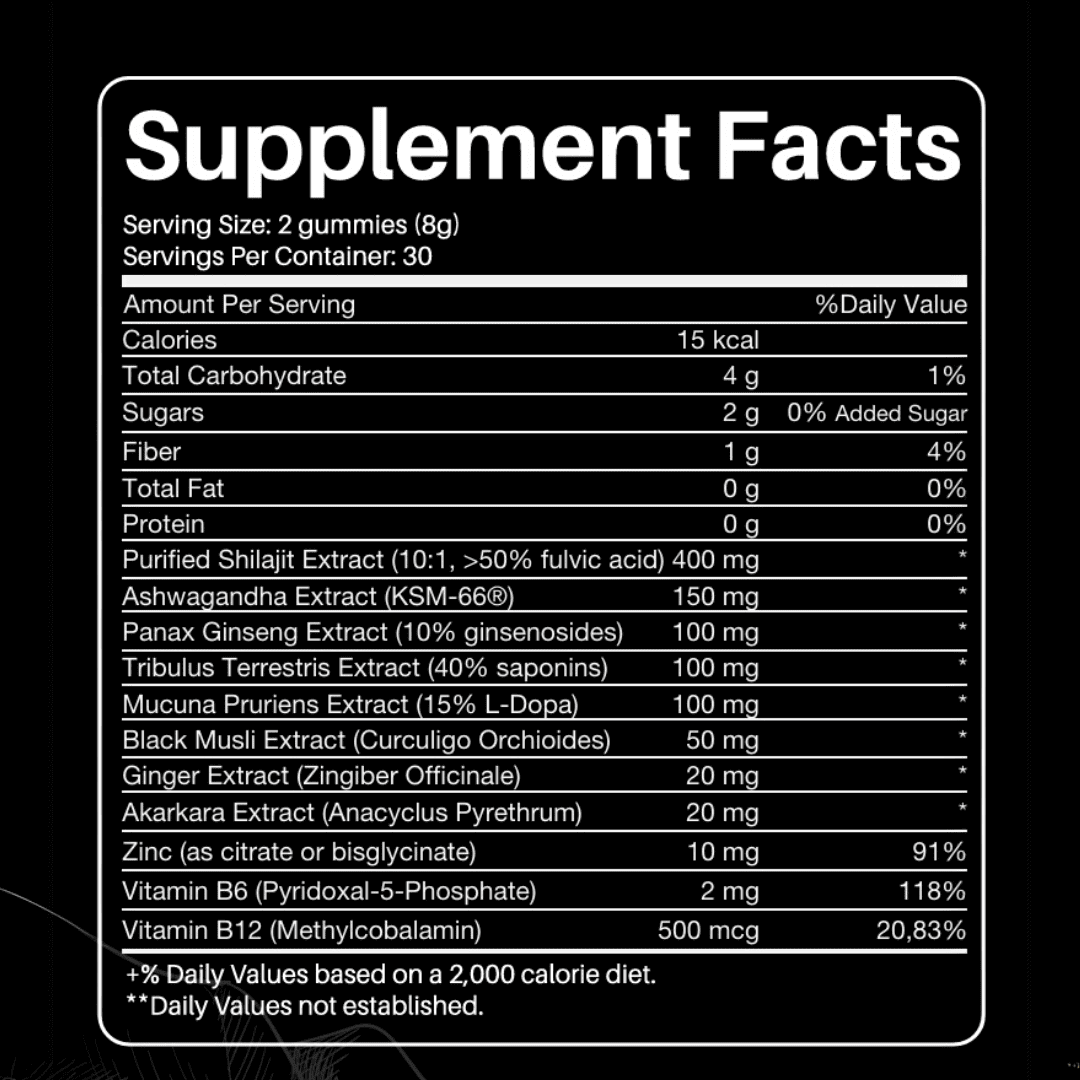 El Shilajit purificado es una fuente concentrada de 87 minerales esenciales y ácido fúlvico, que apoya de forma natural los niveles de testosterona, la energía vital y la recuperación muscular.