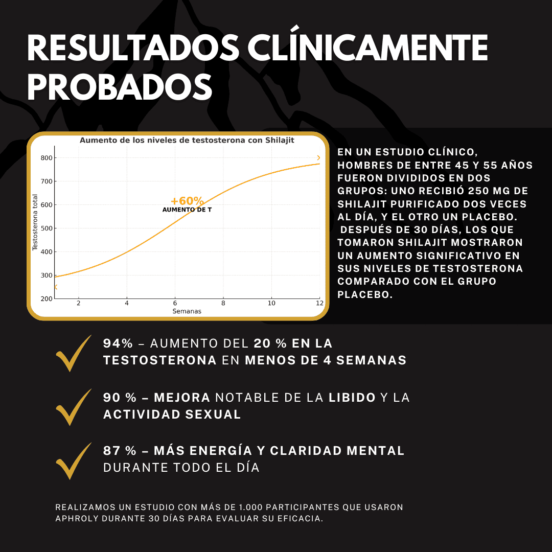 Después de 30 días, los que tomaron Shilajit mostraron un aumento significativo en los niveles de testosterona en comparación con el grupo placebo.